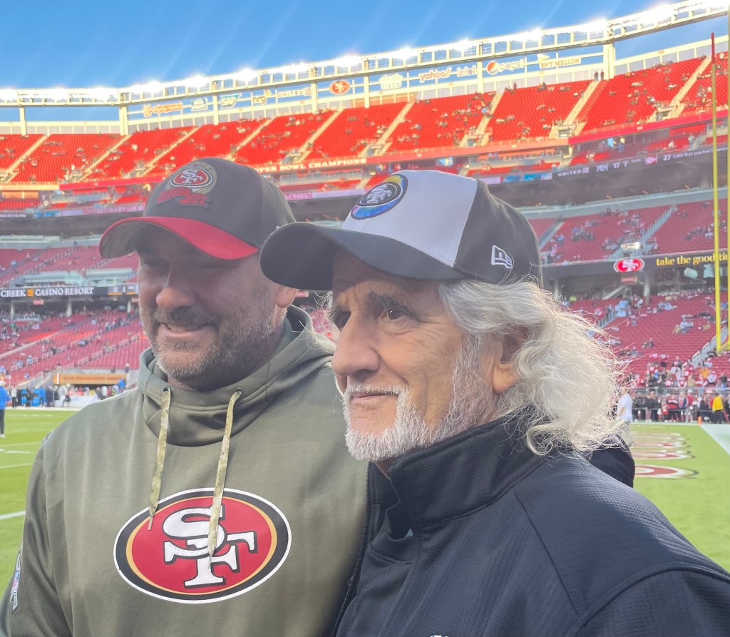 The largess was due to James Cregg, Assistant Offensive Line Coach for the 49ers. His father Jim is friends with Diana (seen pictured below) who has known my wife since 6th grade.
